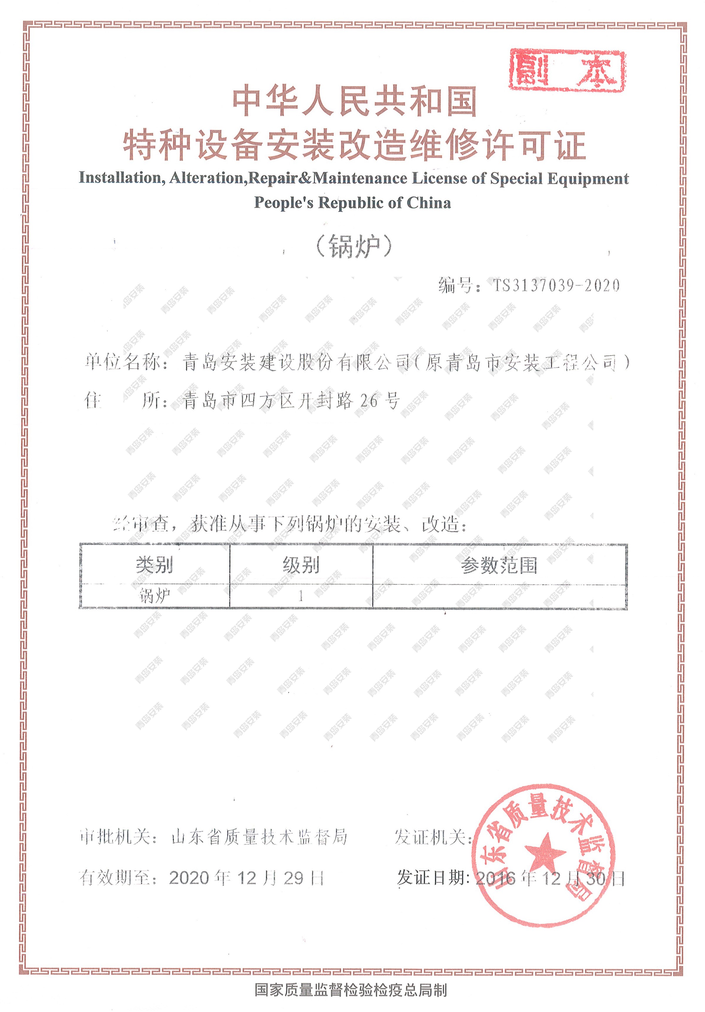 特种设备安装改造维修许可证-锅炉